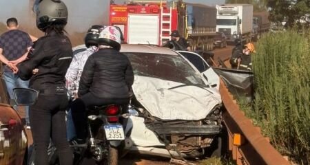 Um acidente envolvendo três veículos deixou uma mulher morta e interditou completamente a BR-267 na madrugada desta sexta-feira (5), no trecho entre Maracaju e Jardim. A batida ocorreu por volta das 3h30, sobre o pontilhão da rodovia, próximo ao acesso à Fazenda Água Boa.